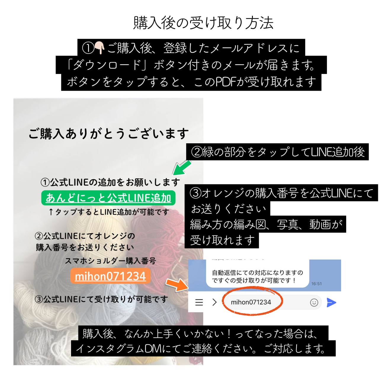 長編み・ながなが編みも少しだけ出てきますが、難しい工程はありません